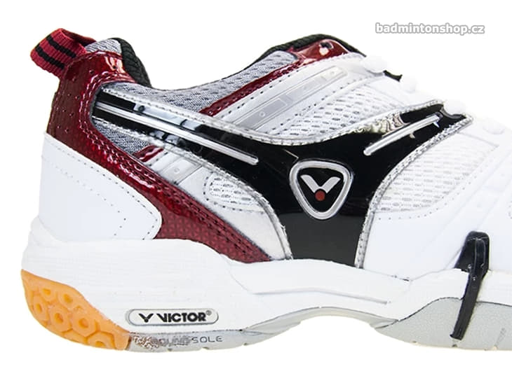 Badmintonová a squashová obuv Victor PS 8300 je špičkový model určený pro náročné závodní hráče, kteří hledají lehkou, pohodlnou a stabilní obuv pro intenzivní hru. Navazuje na velmi úspěšný model Victor AWS 9200 a nabízí vylepšený komfort díky měkkému provedení a kvalitnímu svršku z materiálu Double Russel Mesh s ventilačními zónami na špičce, bocích i jazyku. Boční antitorzní výztuhy spolu se Stability Systemem zajišťují výbornou oporu při rychlých změnách směru, zatímco jazyk přichycený po stranách zůstává na svém místě i při agresivním pohybu. Obuv je vybavena vyjímatelnou, rychleschnoucí stélkou a ochranným páskem na špičce, který prodlužuje její životnost v namáhaných místech. Design je decentní a sportovně elegantní – ideální volba pro každého, kdo hledá profesionální sálovou obuv.